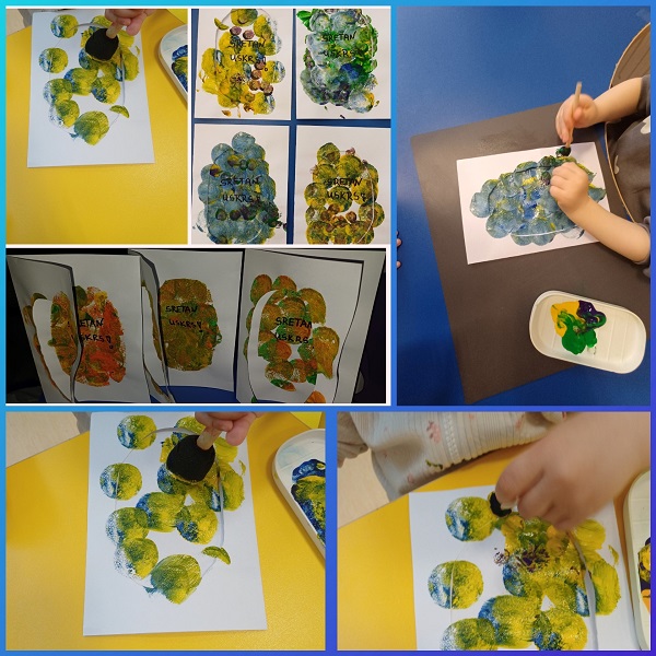 • Lavići – izrada čestitki za Uskrs, umakanje spužvice u temperu, te tapkanje na predložak pisanice. Razvoj kreativnosti i fine motorike