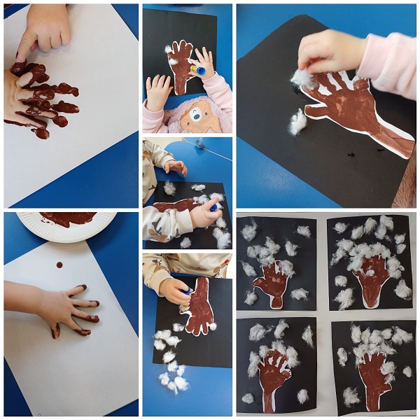 • Lavići – izrada zimskog drveta, otiskivanje dlanova, ljepljenje vate. Razvoj fine motorike i kreativnosti.