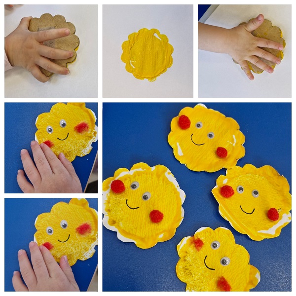 • Likovno-senzorna aktivnost temeljena na tehnici otiskivanja i ukrašavanjem sunca, fina motorika