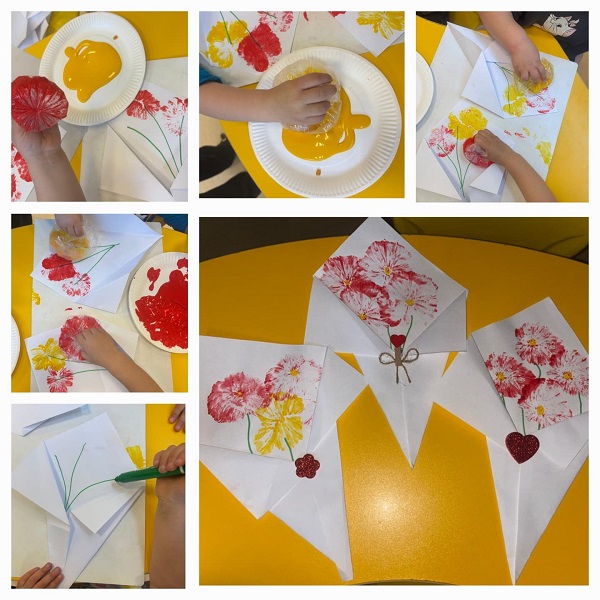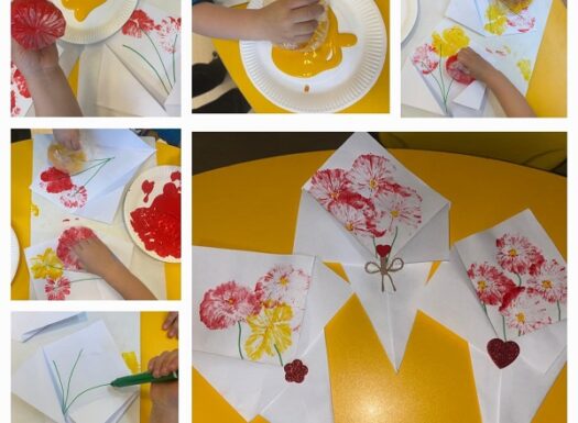 • Žirafice – Obilježavanje Dana žena – buket cvijeća. Otiskivanje vrećicom; tempera. Razvoj mašte i kreativnosti